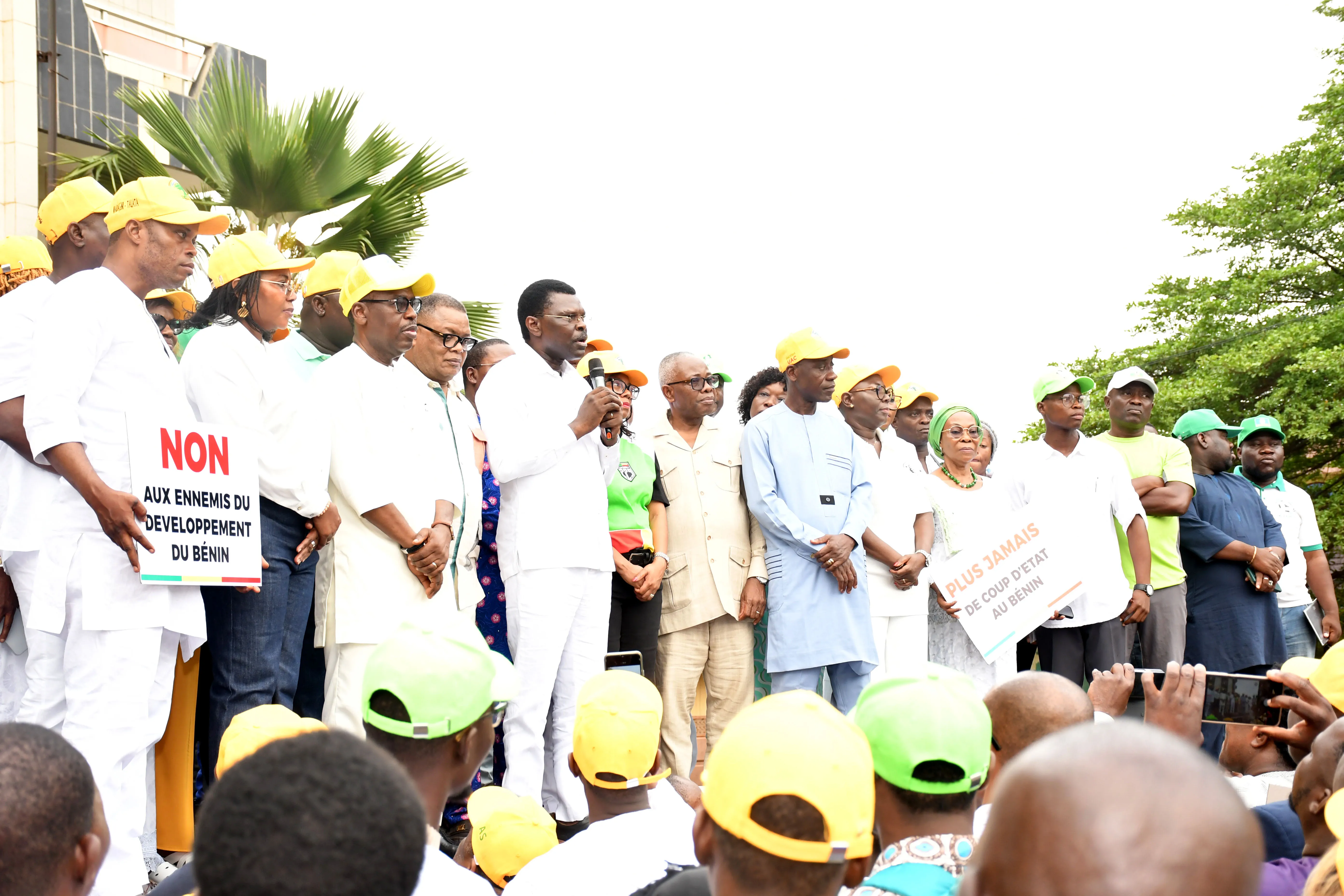 Moment fort de la rencontre, l’intervention de Joseph Djogbénou, président de l’Up Le Renouveau, a tenté de dépasser les clivages partisans. Dans une adresse tournée vers la jeunesse, il a insisté sur le fait que la mobilisation n’était pas celle des partis, mais celle de citoyens. « L’unité nationale, l’État, nos valeurs démocratiques dépassent toutes les obédiences politiques », a-t-il déclaré. Il a mis en garde contre la tentation des coups de force, qualifiant le coup d’État d’illusion d’une journée et de tragédie des années.