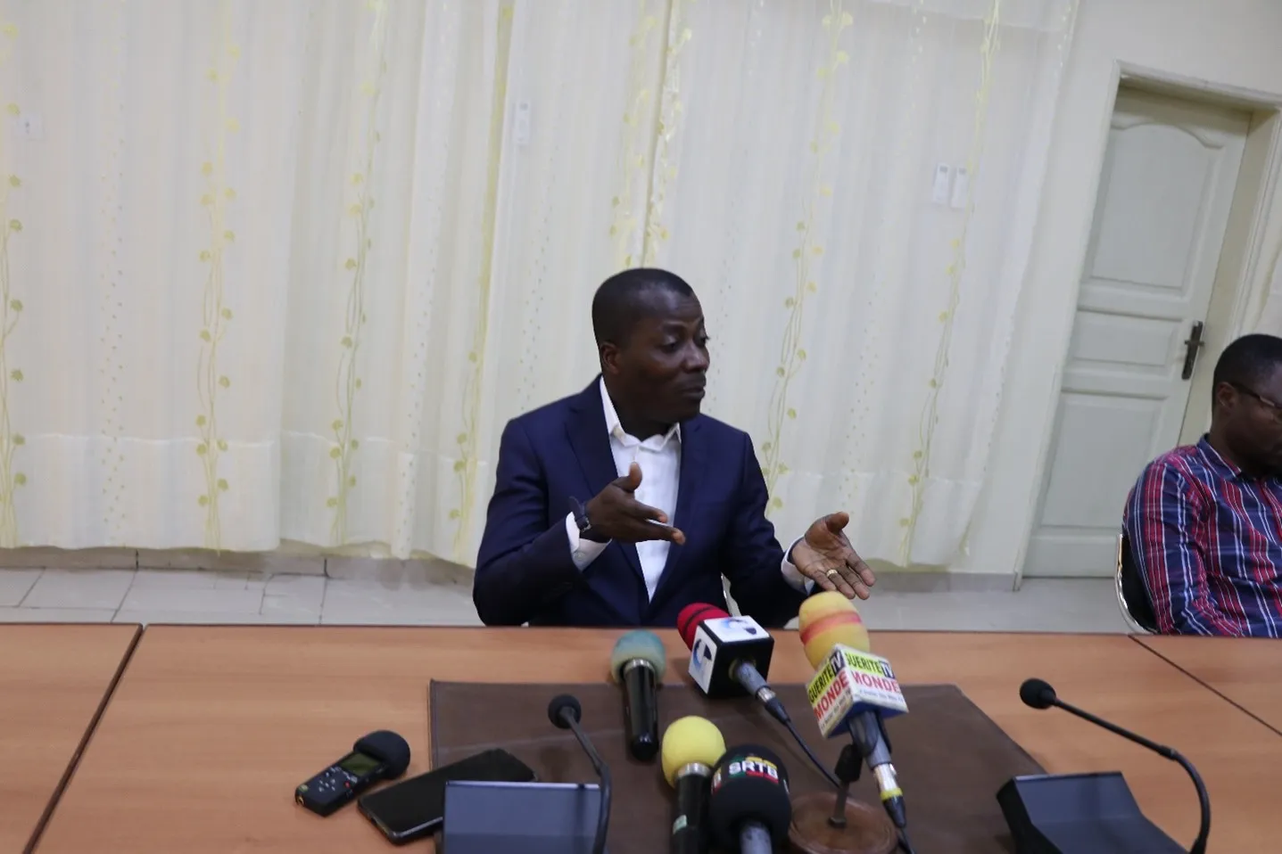 Le porte-parole du gouvernement Wilfried Léandre Houngbédji lors de sa conférence de presse à Porto-Novo