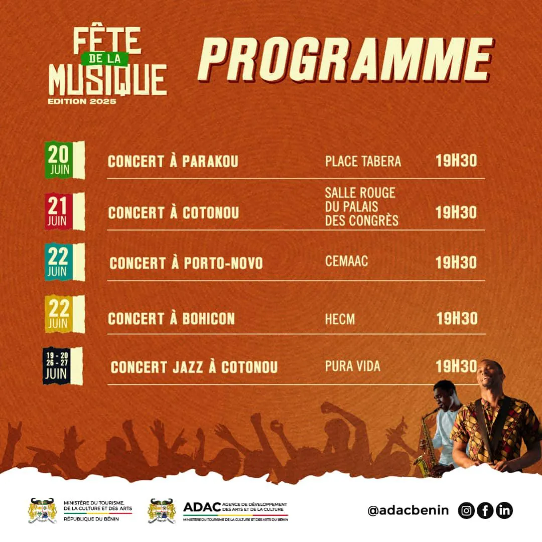 richesse de la scène musicale béninoise, du traditionnel au moderne, avec des concerts