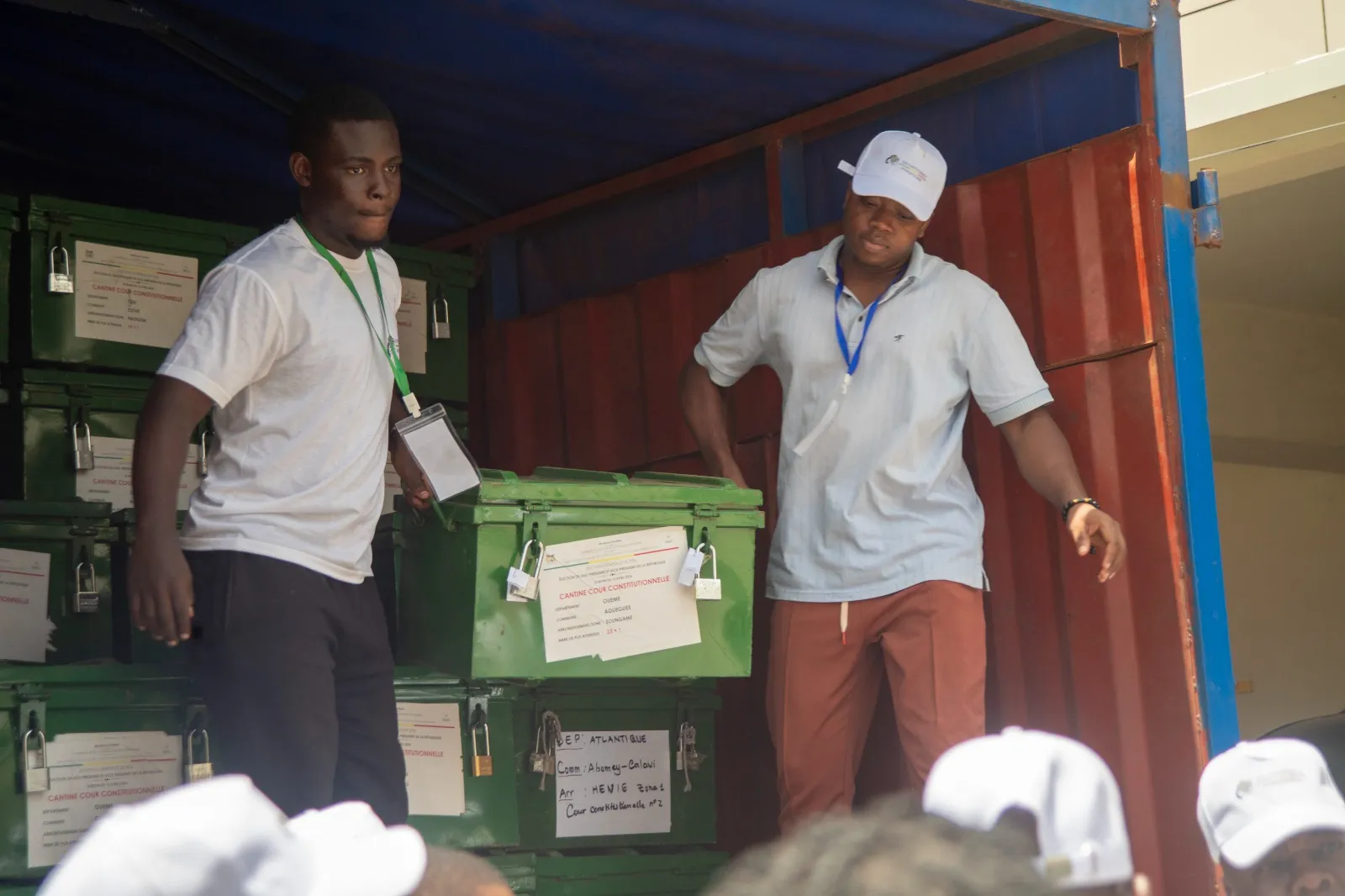 Aux environs de 13 h 24, sous un soleil ardent, un camion chargé des premières cantines scellées a franchi le portail de la Cour constitutionnelle à Ganhi. Ces cantines, étroitement surveillées, constituent les premiers éléments matériels du scrutin présidentiel organisé la veille.
