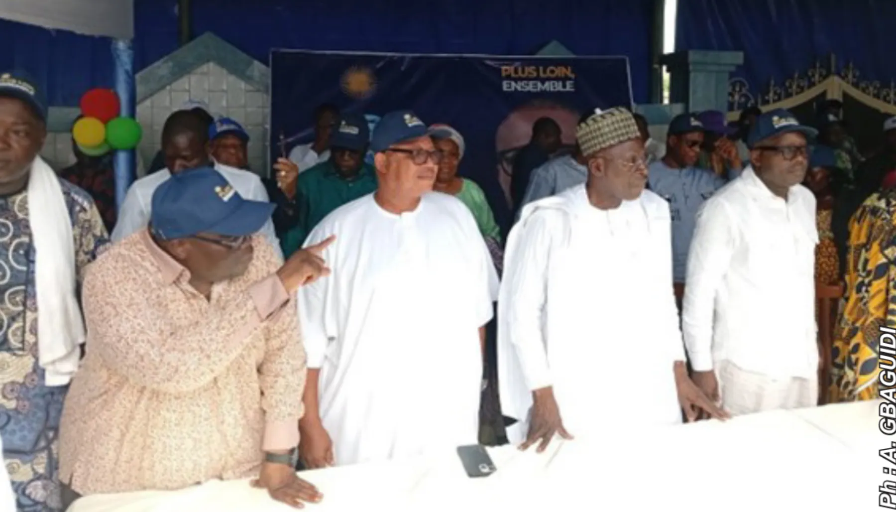Edmond Agoua et plusieurs autres élus, cadres et acteurs politiques autour du ministre d’Etat Abdoulaye Bio Tchané