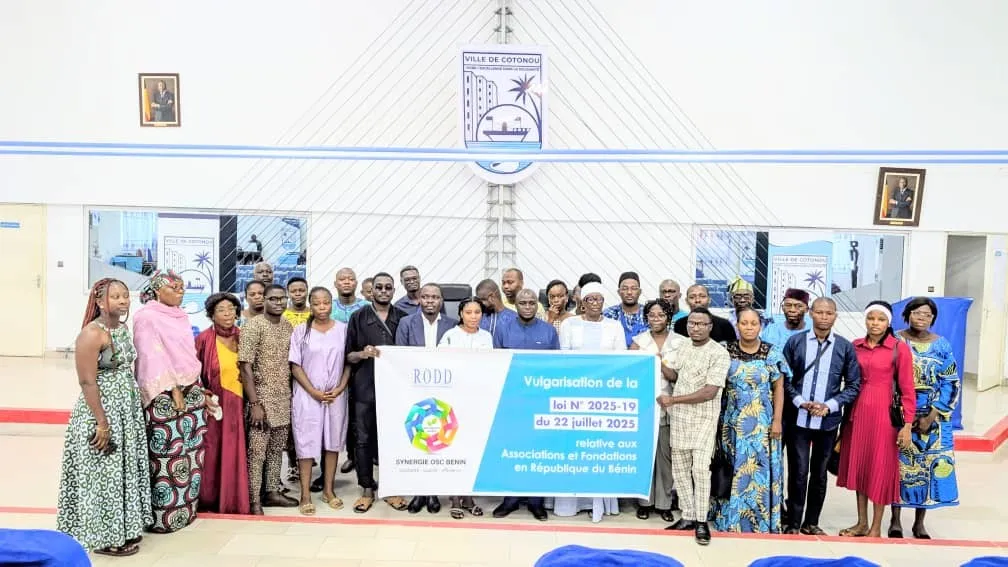 Le Réseau des Ong pour les Objectifs de développement durable (Rodd) a entamé la vulgarisation de la loi N°2025-19 du 22 juillet 2025 portant régime juridique des associations et fondations en République du Bénin. La session du département du Littoral s’est tenue ce vendredi 26 décembre 2025 à la mairie de Cotonou, en présence de responsables d’organisations de la société civile.