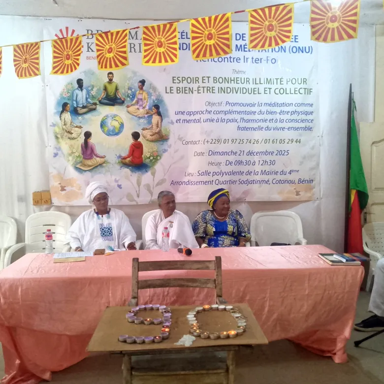 L’Organisation non gouvernementale Brahma Kumaris a célébré, dimanche 21 décembre à Cotonou, la Journée mondiale de la méditation. Une initiative visant à promouvoir le bien-être, la paix et l’harmonie. Placée sous le thème « Espoir et bonheur illimité pour le bien-être individuel et collectif », cette rencontre interconfessionnelle a rassemblé divers acteurs de la société autour de la pratique méditative.