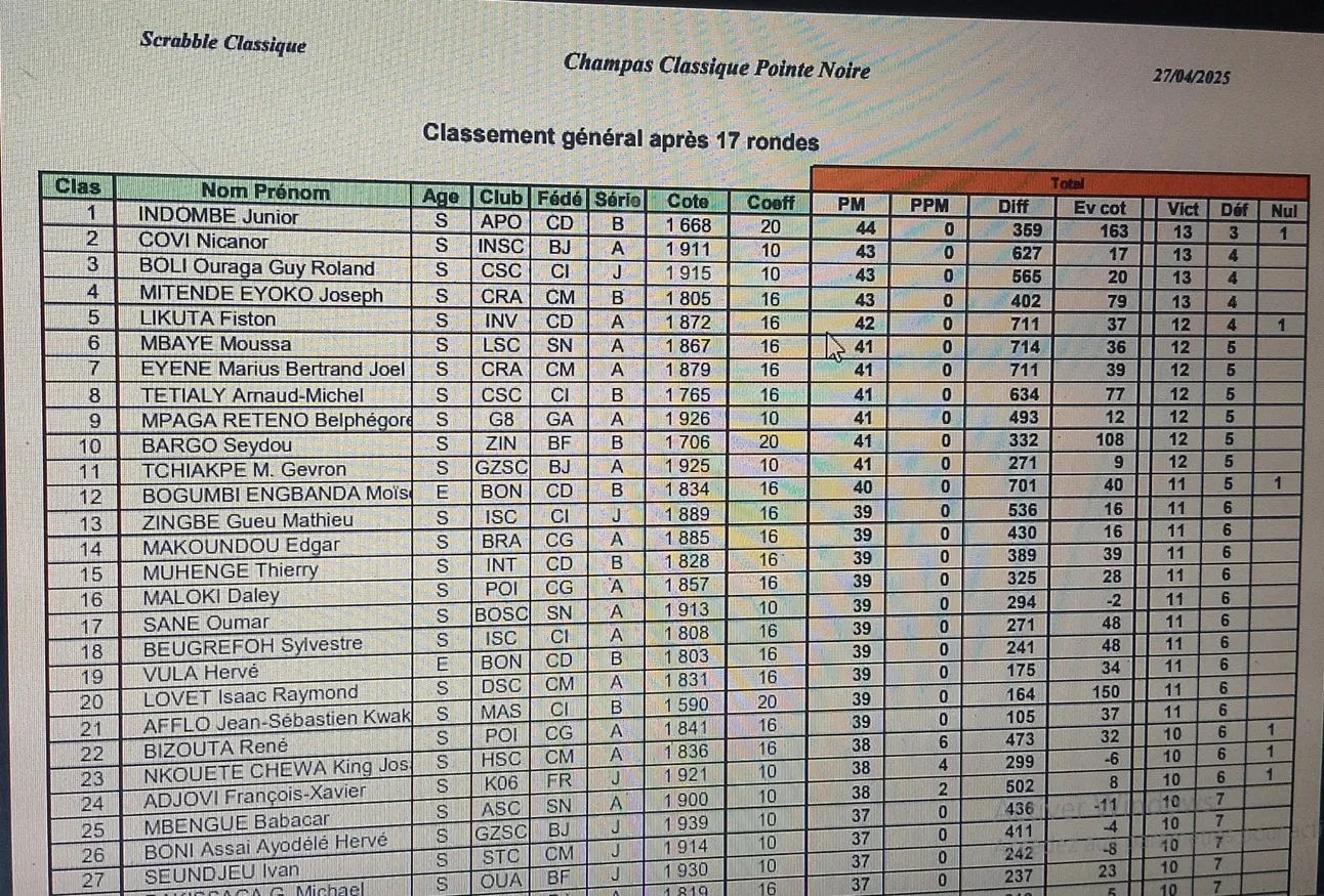 La neuvième édition du Championnat d’Afrique de Scrabble, qui se déroule sous le signe de l’excellence et de la compétitivité, enregistre une participation record pour l’épreuve de Classique, avec 113 joueurs alignés sur la ligne de départ. Un chiffre inédit qui témoigne de l’engouement croissant pour cette discipline exigeante.