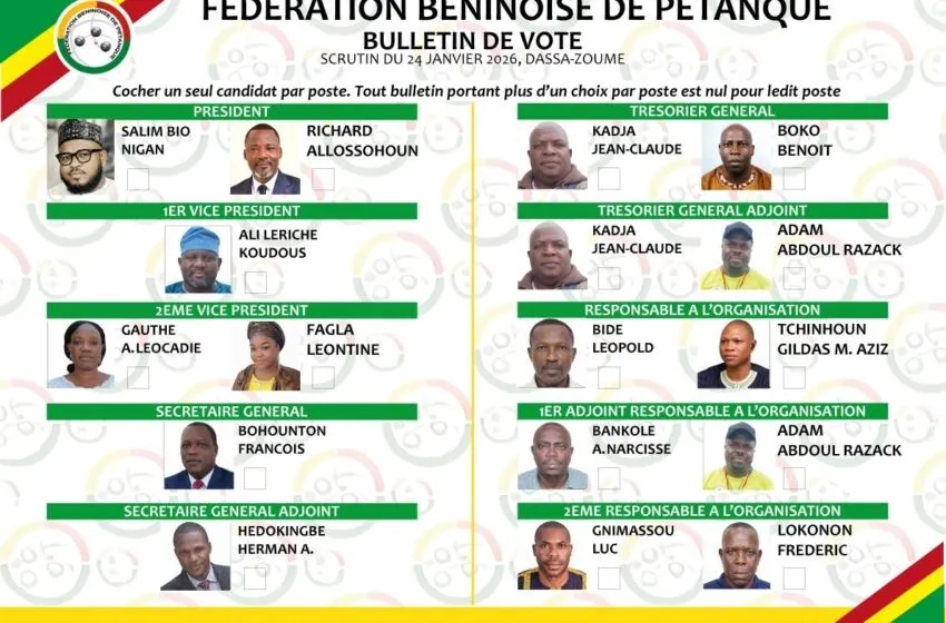 A l’heure des choix, la Fédération béninoise de pétanque (Fbp) entre dans une phase décisive de son processus électoral. Le renouvellement de son bureau exécutif, attendu le 24 janvier prochain à Dassa, cristallise les attentions d’un milieu sportif en quête de stabilité et de projection.