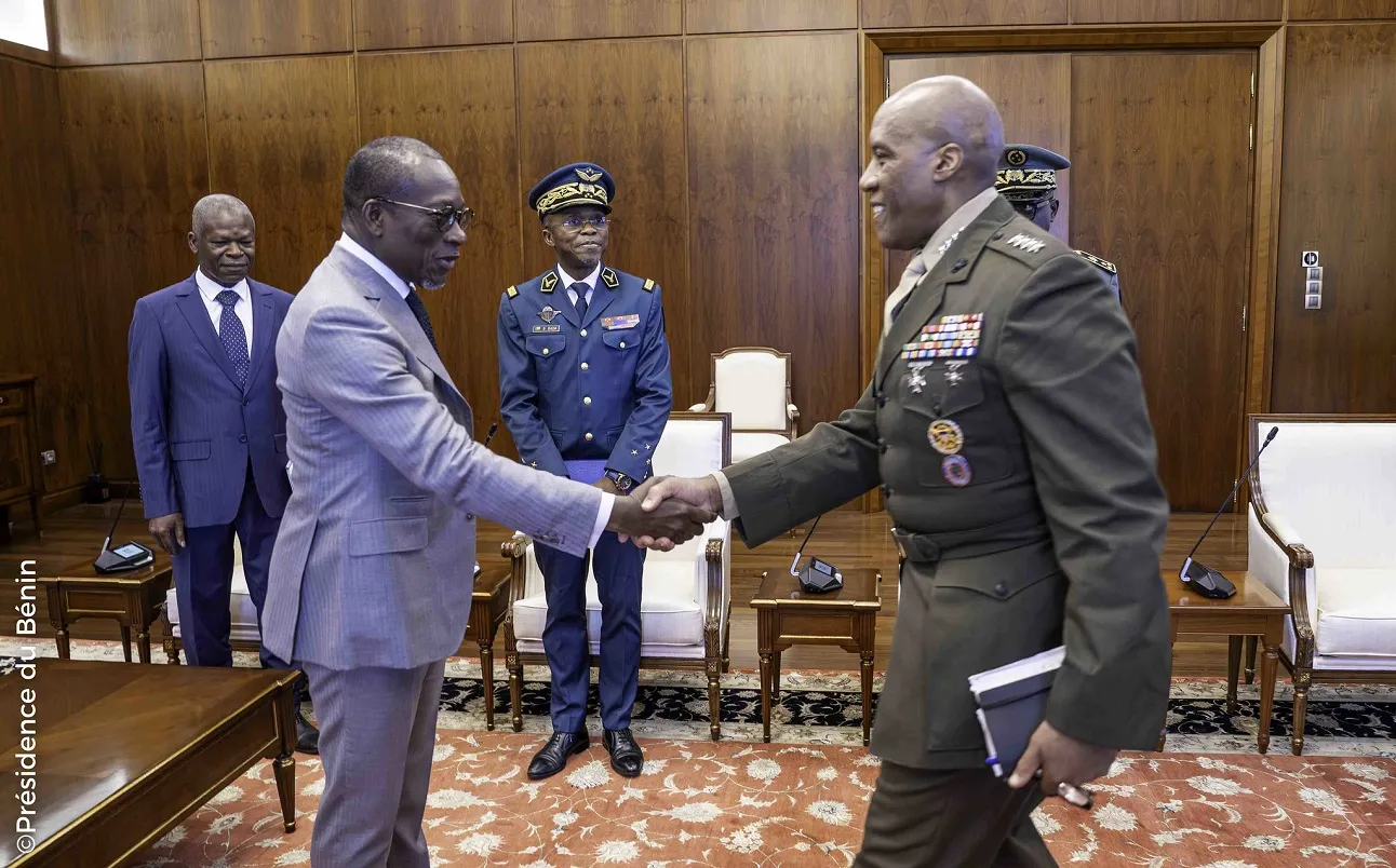 La coopération militaire entre le Bénin et les Etats-Unis d’Amérique a de beaux jours devant elle. La visite du Général de corps d'armée Michael Langley, commandant du Commandement militaire américain pour l'Afrique (Africom) au Bénin et son audience au palais de la Marina, ce jeudi 2 mai, sont la preuve palpable de cette perspective alléchante. « Avec le président Patrice Talon, nous avons discuté de plusieurs sujets concernant la coopération militaire. Nous avons aussi échangé sur ce que nous pouvons faire pour approfondir la relation entre nos deux pays en matière de sécurité. Nous avons discuté également des défis et menaces que rencontrent le Bénin et la sous-région », a fait savoir le Général de corps d’armée après son audience. « Nous avons aussi exploré les opportunités qui existent dans la lutte contre ces menaces. Nous voulons créer un environnement de sécurité qui permettra aux populations de pouvoir s’épanouir », a-t-il ajouté. Selon lui, le bon partenariat qu’il y a entre les deux pays requiert un travail d’équipe et c’est ce qui se fait depuis en renforçant les capacités des Forces armées béninoises et en mettant des équipements à disposition. «Nous allons continuer à le faire pour nous assurer que nous construisons un environnement de sécurité », a promis le commandant du Commandement militaire américain pour l'Afrique (Africom), qui explique aussi qu’il multiplie ses voyages en Afrique afin d’interagir avec les partenaires africains et d’apprendre d’eux.
