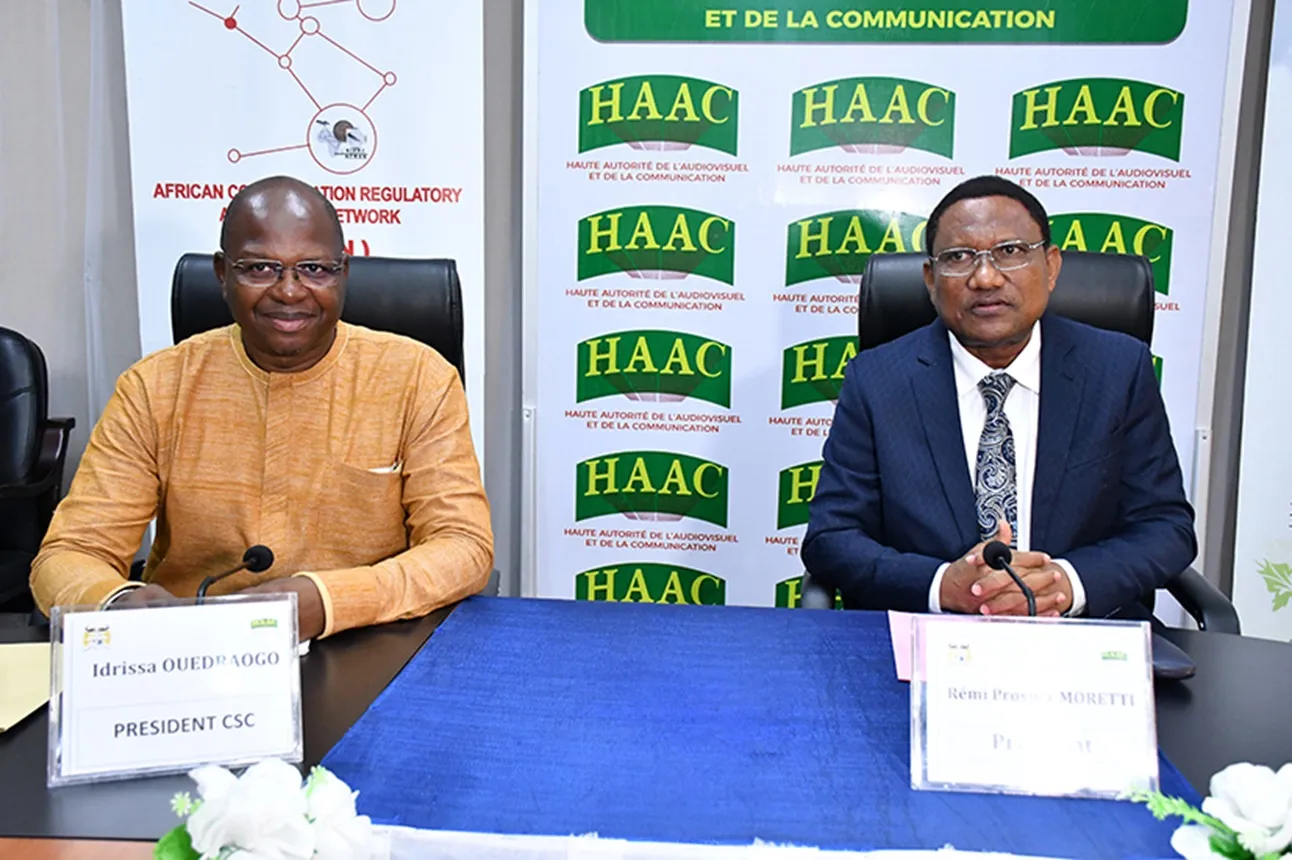 Idrissa Ouédraogo, président du Conseil supérieur de la Communication du Burkina Faso et Rémi Prosper Moretti, président de la Haute autorité de l'audiovisuel et de la communication