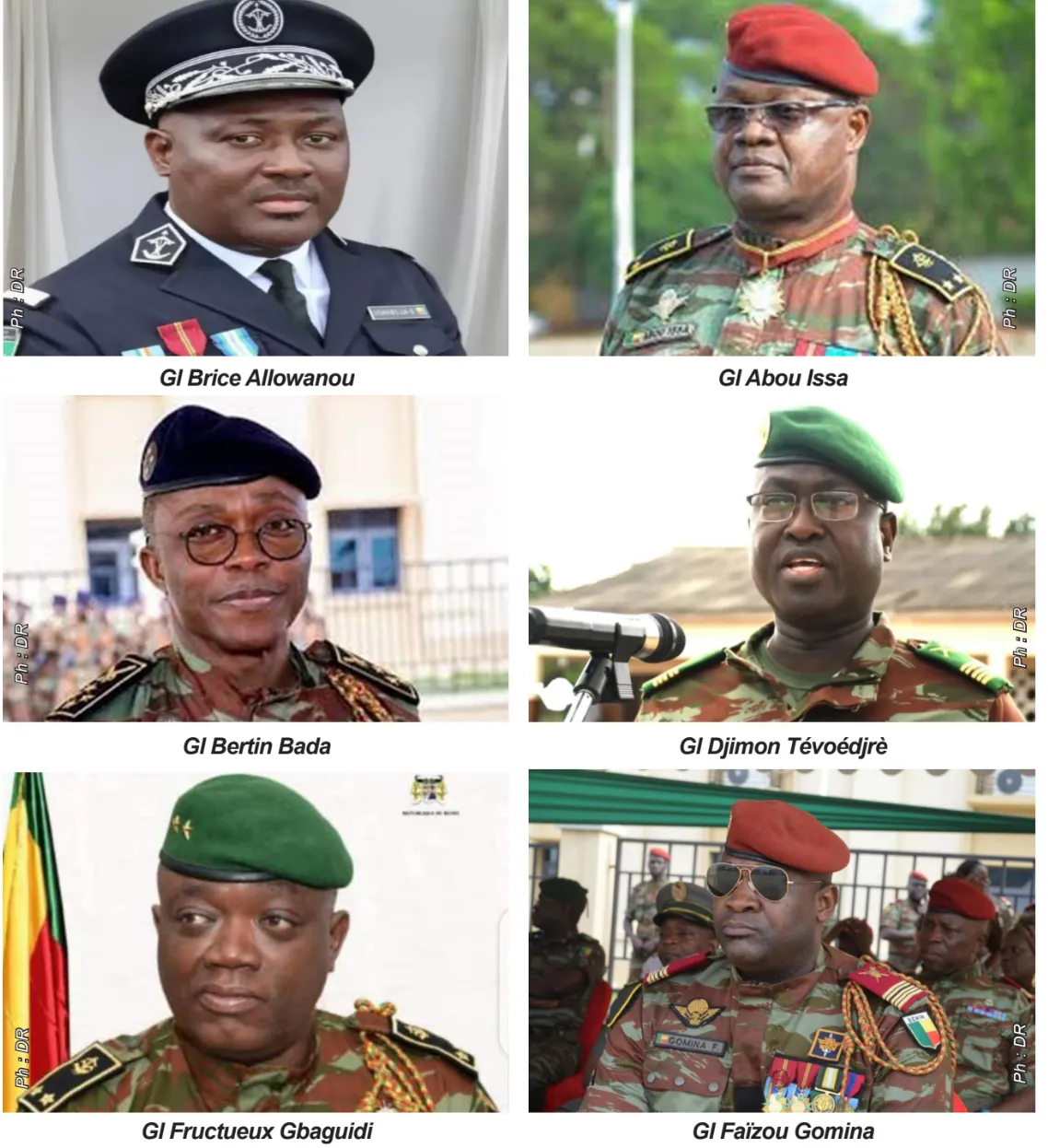 Les officiers Bertin Bada, Fructueux Gbaguidi, Abou Issa, Djimon Tévoédjrè, Faïzou Gomina et Brice Allowanou ont été promus à divers grades au sein des Forces de défense et de sécurité. Ces décisions, prises lors du Conseil extraordinaire des ministres, vendredi dernier, s’inscrivent dans une dynamique de reconnaissance du mérite, de l’expérience et de l’engagement au service de la nation. Elles traduisent également une volonté affirmée de renforcer la chaîne de commandement et d’optimiser l’efficacité opérationnelle des forces armées et de la Police républicaine.