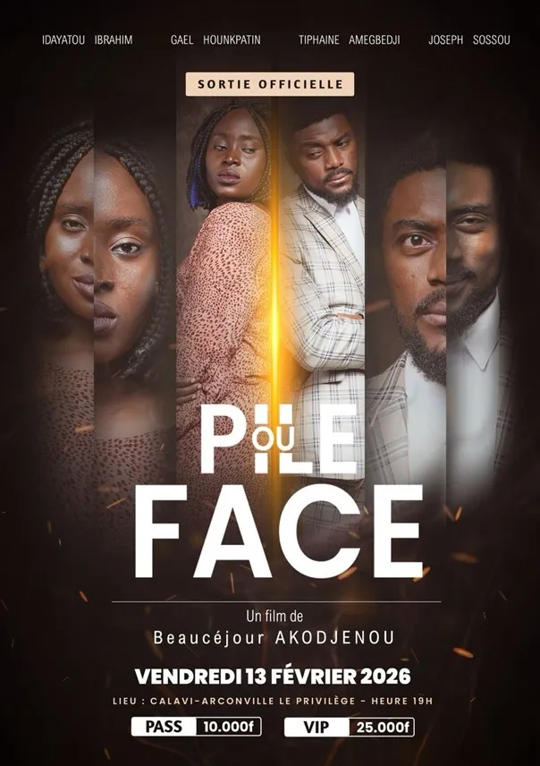 Entre passion, trahison et manipulation, le long métrage « Pile ou Face », réalisé par Beaucéjour Akodjenou et produit par Idayatou Ibrahim, a été présenté en avant-première, vendredi 13 février dernier, à Abomey-Calavi. Un film intense qui explore les zones d’ombre des relations humaines à la veille de la Saint-Valentin.