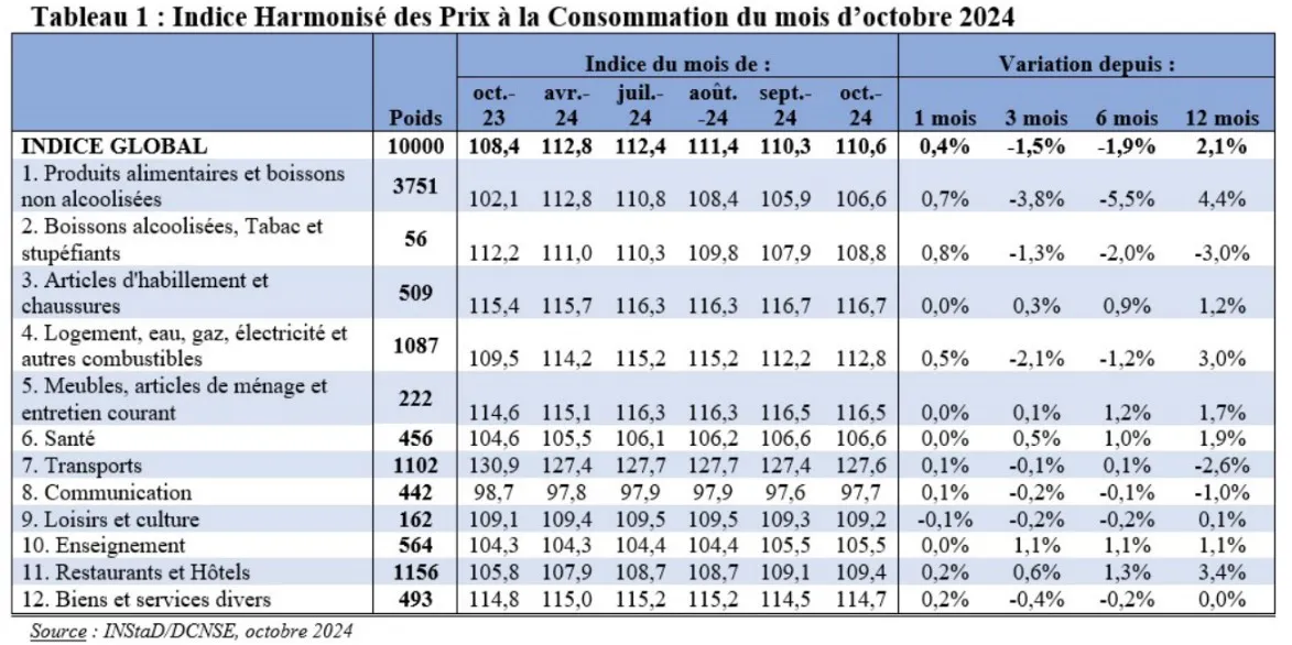 harmonisé des prix à la consommation (Ihpc) du mois d’octobre 2024 a enregistré