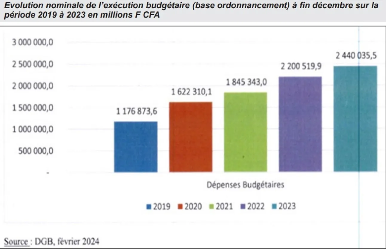 Il est noté une hausse continue des dépenses budgétaires en lien avec le niveau des recettes et en cohérence avec les objectifs stratégiques