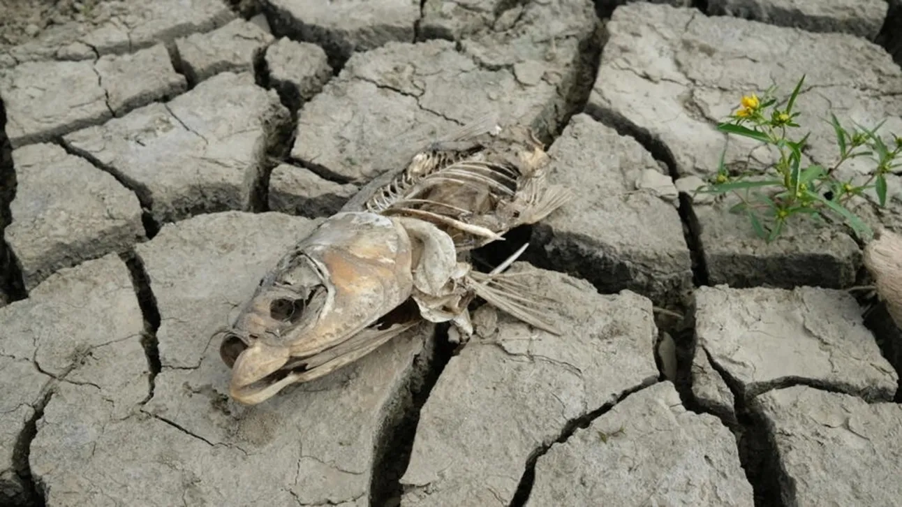 Un poisson mort le long des rives asséchées du Mississippi, à West Memphis dans l'Arkansas, le 13 octobre 2023