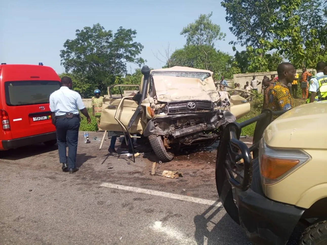 L’accident a impliqué un véhicule Land Cruiser militaire en provenance de Cotonou et un camion de type Titan, chargé de sacs de maïs en provenance du Nord. Le choc s’est produit non loin du poste de la Douane. Selon les premiers témoignages recueillis sur place, le véhicule militaire a été violemment embouti par le camion, témoignant de la force de l’impact.