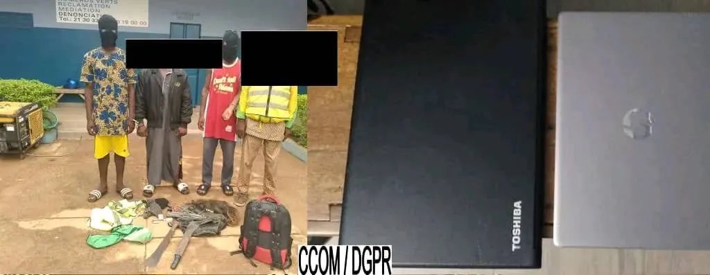La réaction de la police a été rapide. Une patrouille motorisée a pris en chasse les malfrats, réussissant à interpeller l’un d’eux. Lors de cette arrestation, les agents ont retrouvé un sac contenant divers objets : un clic, une machette, une cagoule, des perruques, ainsi que des objets fétichistes. Poursuivant leur enquête, les policiers ont procédé à une perquisition le 17 mai au domicile des suspects, dans le quartier Camp-Dagbè. Trois autres complices y ont été arrêtés, et du matériel suspect a été saisi : coupe-coupe, cagoules, fétiches et autres accessoires probablement utilisés lors des cambriolages.